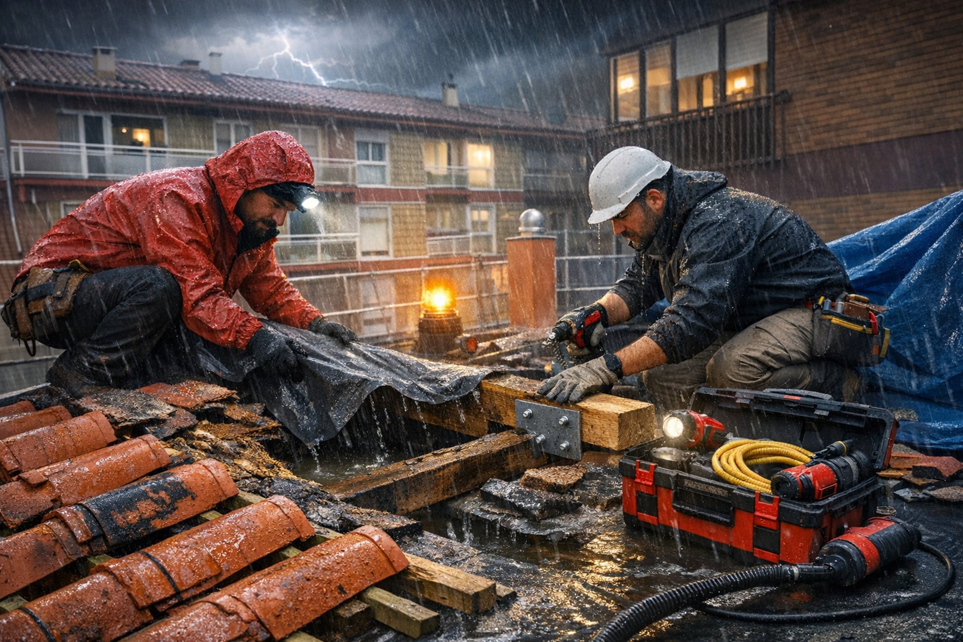 Las emergencias no tienen horario, y en GLOBAL VBN nuestra prioridad es su tranquilidad. Por eso, contamos con un equipo técnico especializado en intervención rápida para dar respuesta inmediata ante filtraciones graves, roturas de cubiertas o daños estructurales causados por temporales y tormentas.